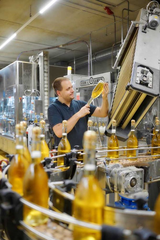 Unsere Unternehmensreportagen zeigen Mitarbeitende bei dem, was sie wirklich tun – im Keller, im Lager, im Labor, im Gespräch oder draußen im Weinberg.